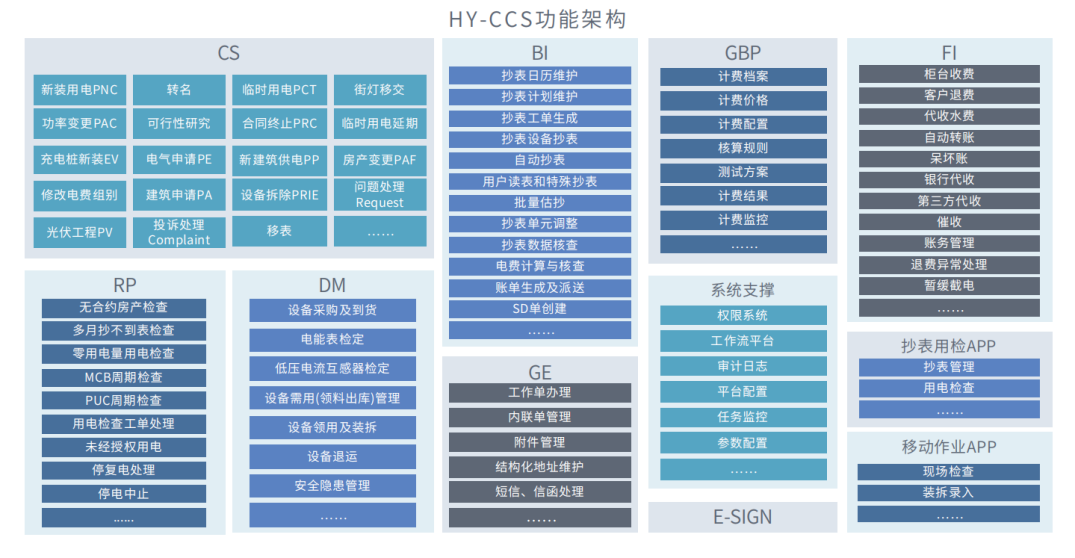 提供分时段、间隔的电力计费,支持有表计量和无表计量计费、支持复杂层次 结构的账户计费等全面计费方式。
