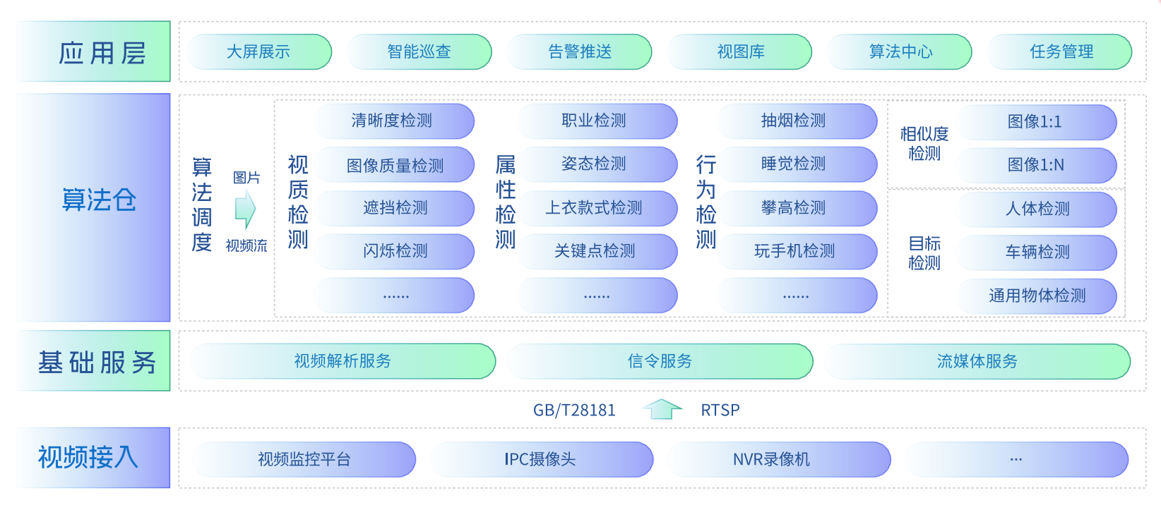 现有算法种类数十种,并持续迭代开发、训练和发布新的算法模型。提供私有化部署和定制化开发。