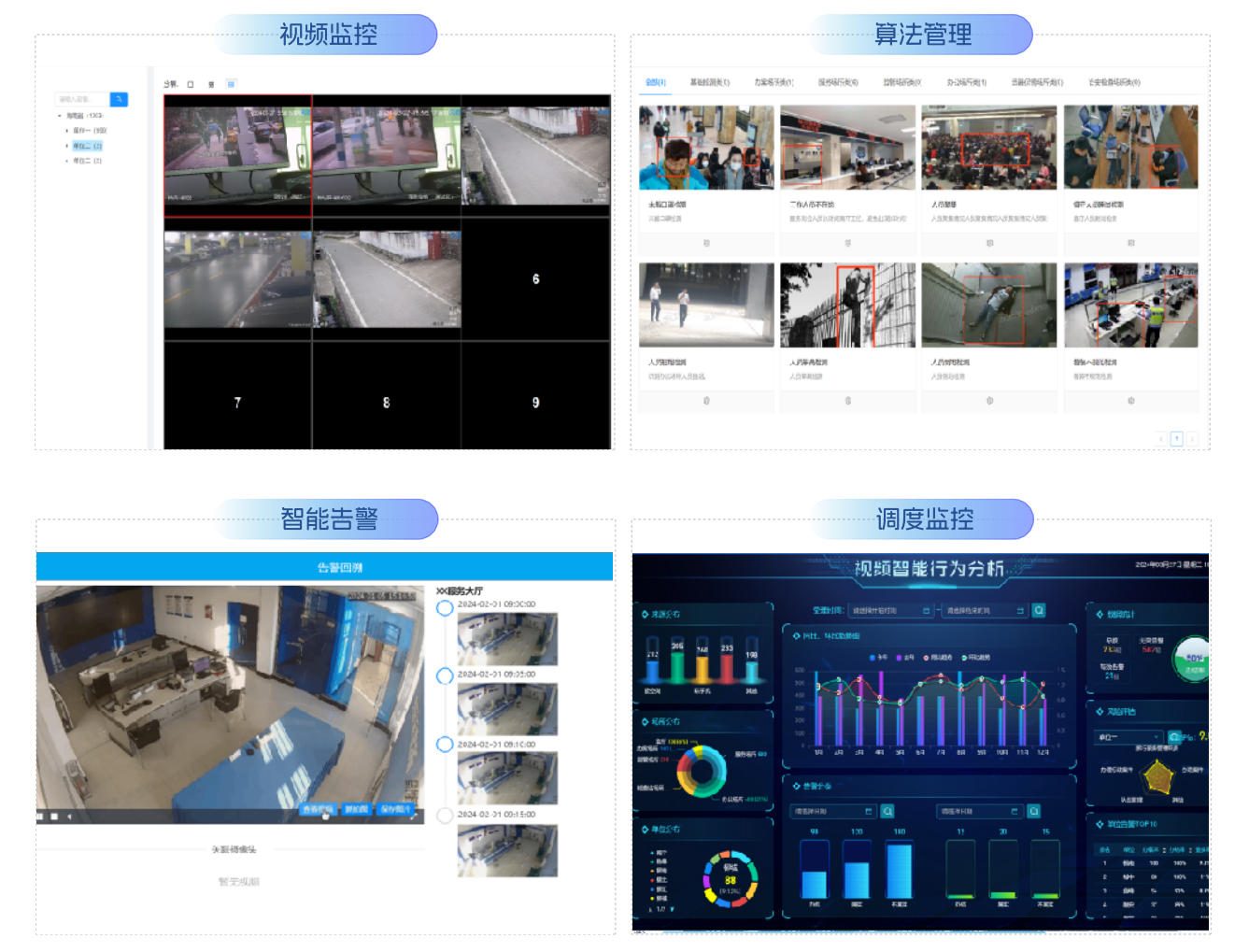 图像智能分析平台是专门提供人工智能图像分析服务的预警监测平台。平台基于计算机视觉技术,依靠 自主研发的深度学习算法,提供海量图像内容的精准识别和高效处理服务,实现非人为干预下的人、车、 物、行为、事件等的智能监测、实时预警、全程溯源。算法覆盖人体检测、属性检测、通用物体检测、车 辆检测、行为检测、姿态识别、图像相似度检测、图像质量检测等诸多场景,可广泛应用于电力、公安等 多个行业,助力政企单位提高视频监控的智能化水平。