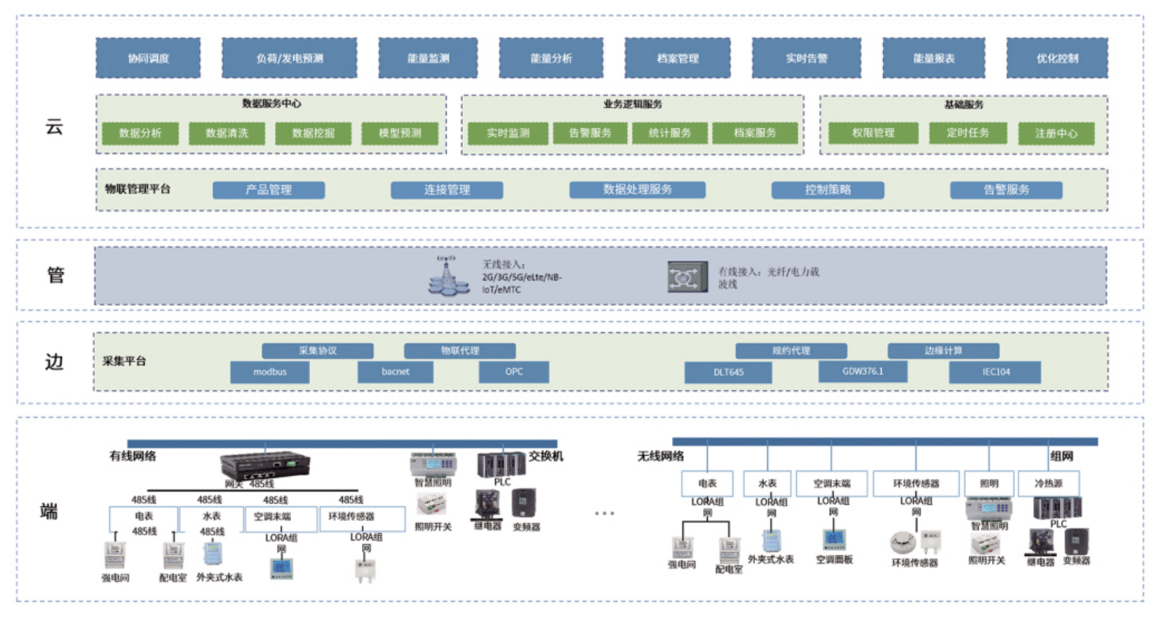 进行数据采集、传输、控制,同时根据采集到的数据实现对应的监测、分析、管理、预测、控制、调度功能,实时掌握用能状况,通过实时监控、能效分析、能效优化、优化调度的闭环管理,实现企业用能从粗放型到精细化的管理模式转变。